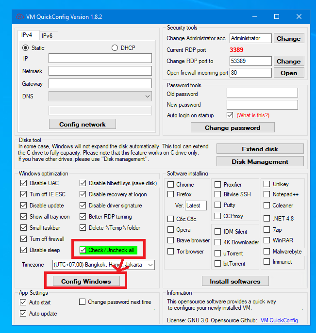 1) HƯỚNG DẪN SỬ DỤNG PHẦN MỀM TỐI ƯU VPS (VMQuickConfig)