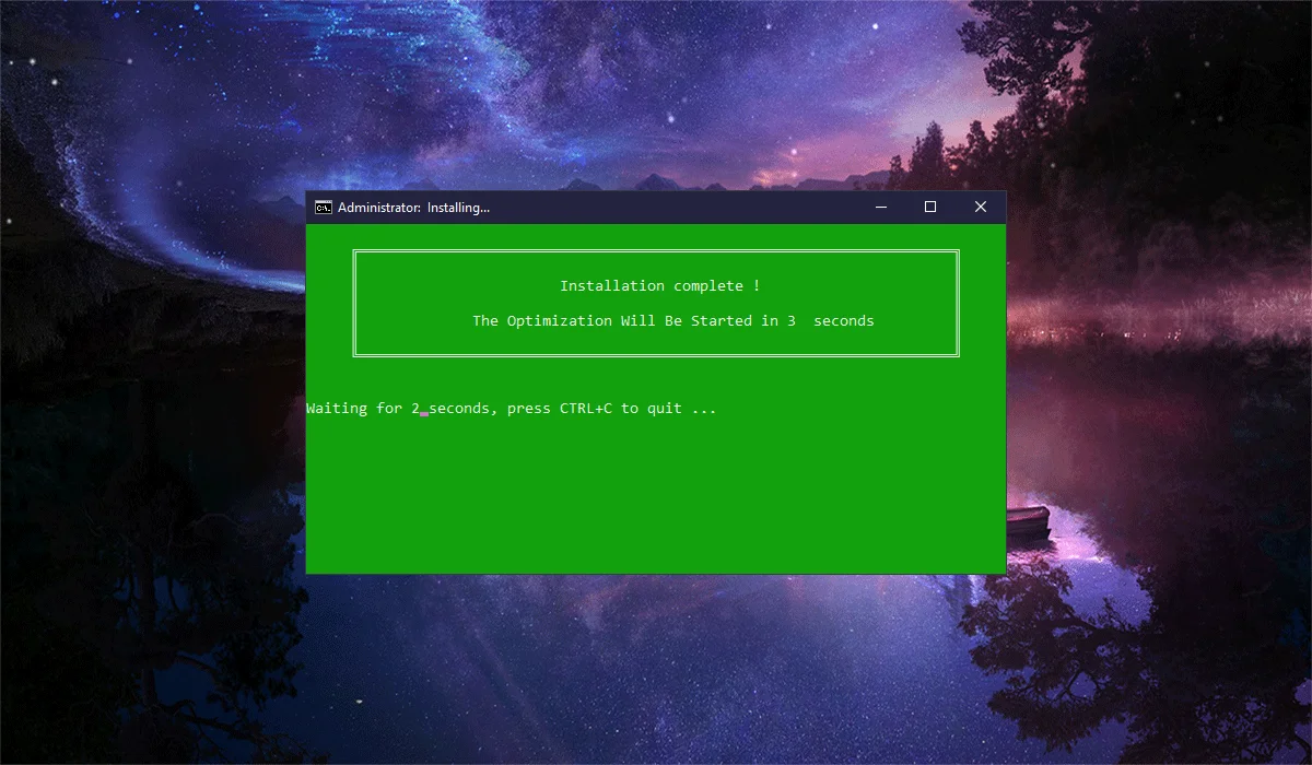 Installation complete ! & The Optimization Started !nghĩa là bạn đã cài đặt thành công và tool đang bắt đầu hoạt động.