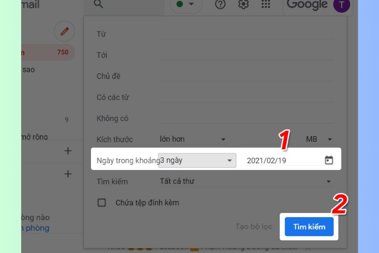 - Bước 6: Hãy nhấn vào nút “Tìm kiếm” để hiển thị các thư phù hợp