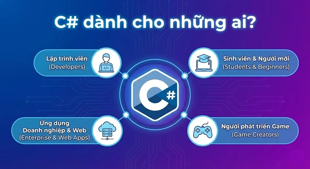 C# được xây dựng dựa trên nền tảng và kế thừa nhiều ưu điểm của C++ và Java, kết hợp giữa hiệu năng, tính an toàn và khả năng phát triển ứng dụng linh hoạt. Nhờ đó, C# trở thành một trong những ngôn ngữ phổ biến hàng đầu, được sử dụng rộng rãi trong phát triển ứng dụng desktop, web, mobile, game và các hệ thống doanh nghiệp trên nền tảng .NET.