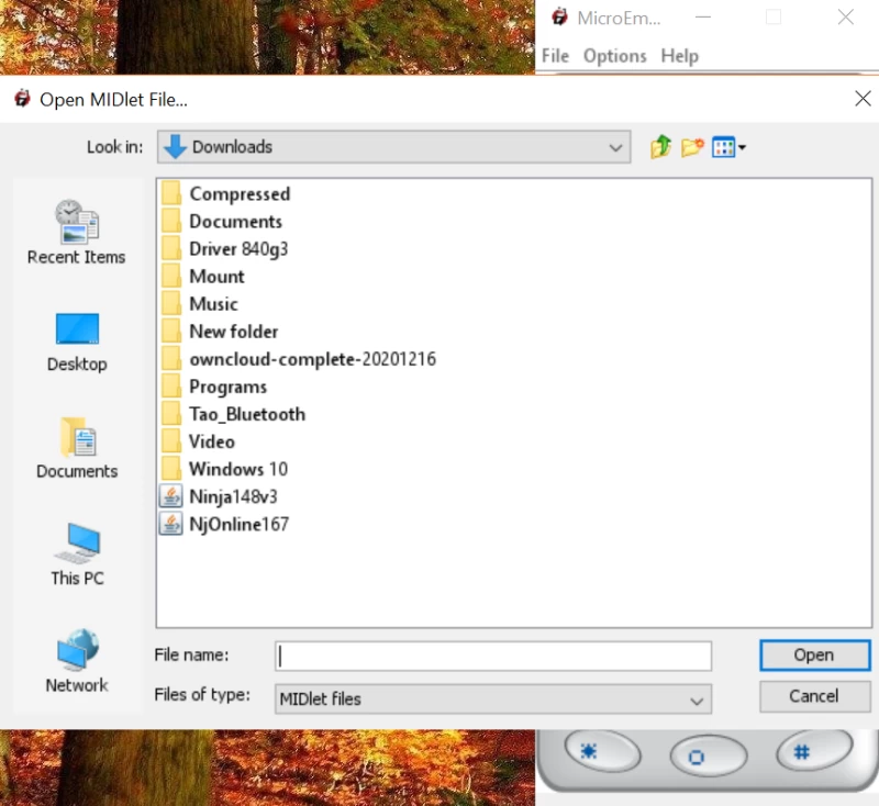 Bước 3: Mở Microemulator, chọn file microemulator.jar