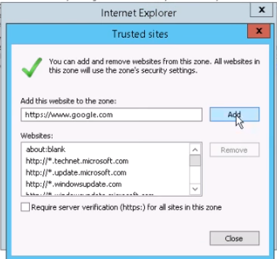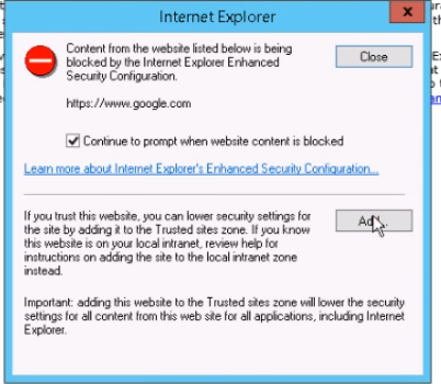 – Sau khi xong bạn có thể vào IE vào một trang web bất kì để check, nếu vẫn không truy cập được trang web bạn thì khi không truy cập được IE sẽ hiện ra thông báo các bạn ấn vào add.