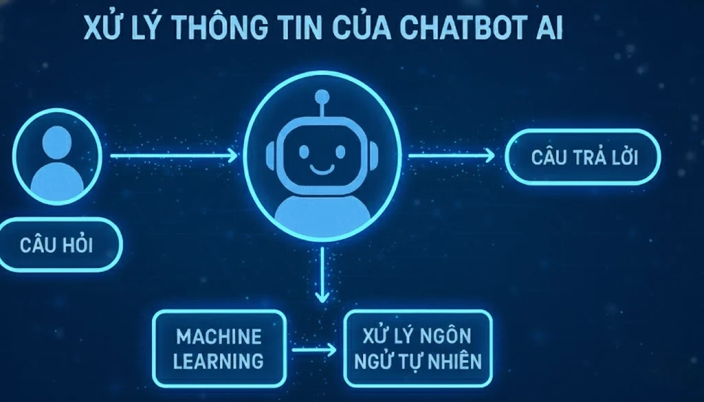 Chatbot AI xử lý thông tin đầu vào của người dùng bằng các thuật toán học máy (machine learning) và xử lý ngôn ngữ tự nhiên. Khi bạn gửi một câu hỏi, chatbot sẽ phân tích ý nghĩa, xác định mục đích, sau đó tìm kiếm dữ liệu phù hợp để đưa ra câu trả lời chính xác nhất.