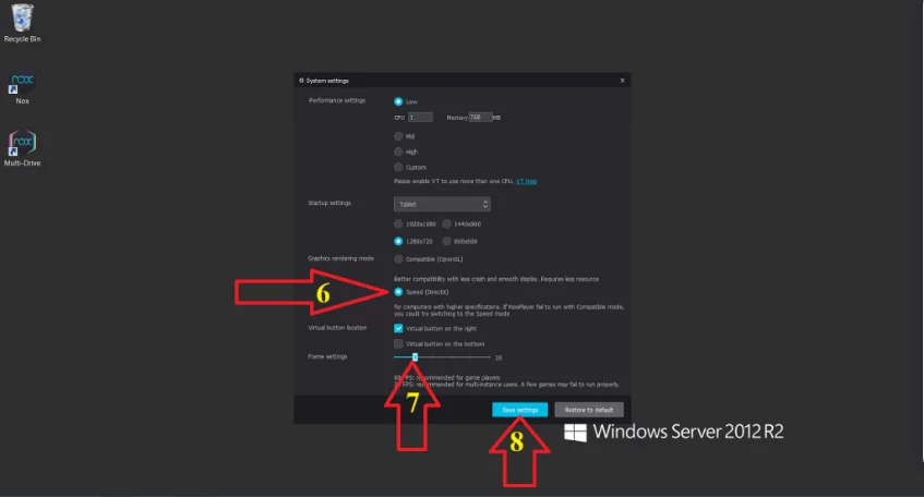 Sau khi hoàn tất cấu hình thì các bác save lại sau đó khởi động lại nox player để xem kết quả !