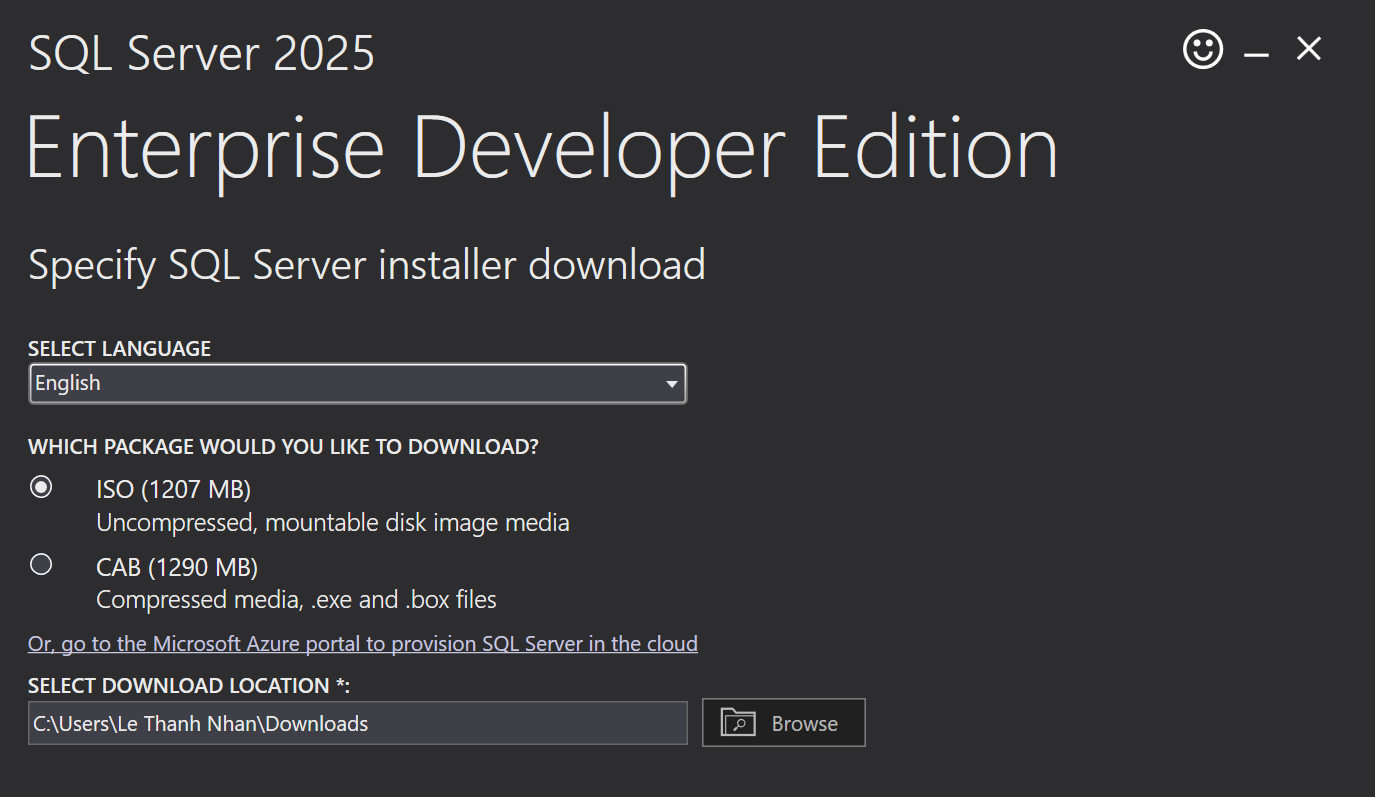 - Chạy file SQL2025-SSEI-EntDev.exe đã tải về (thường trong thư mục Download).