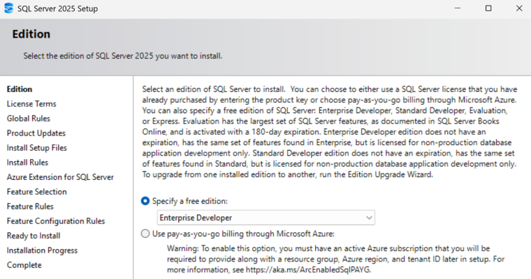 - Trên máy trạm, SQL Server 2025 phiên bản Developer là phù hợp.