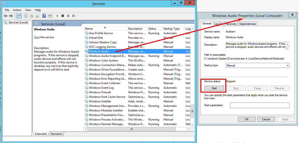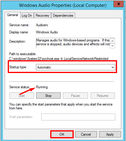 STEP 1. Cấu hình Windows Audio Service