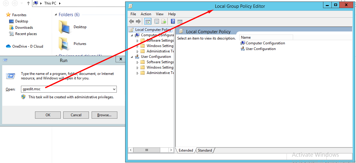 1. Thực hiện tương tự bước 1 theo STEP 1 để mở hộp thoại Run > gpedit.msc.