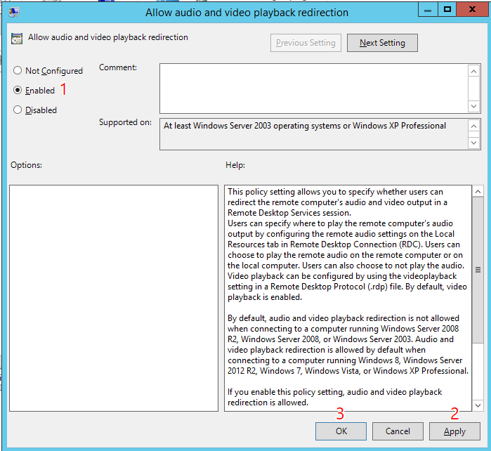 Hướng dẫn sau đây sẽ hỗ trợ bạn kích hoạt âm thanh / video thông qua ứng dụng Remote Desktop được xây dựng trên HĐH Windows Server 2012 R2.