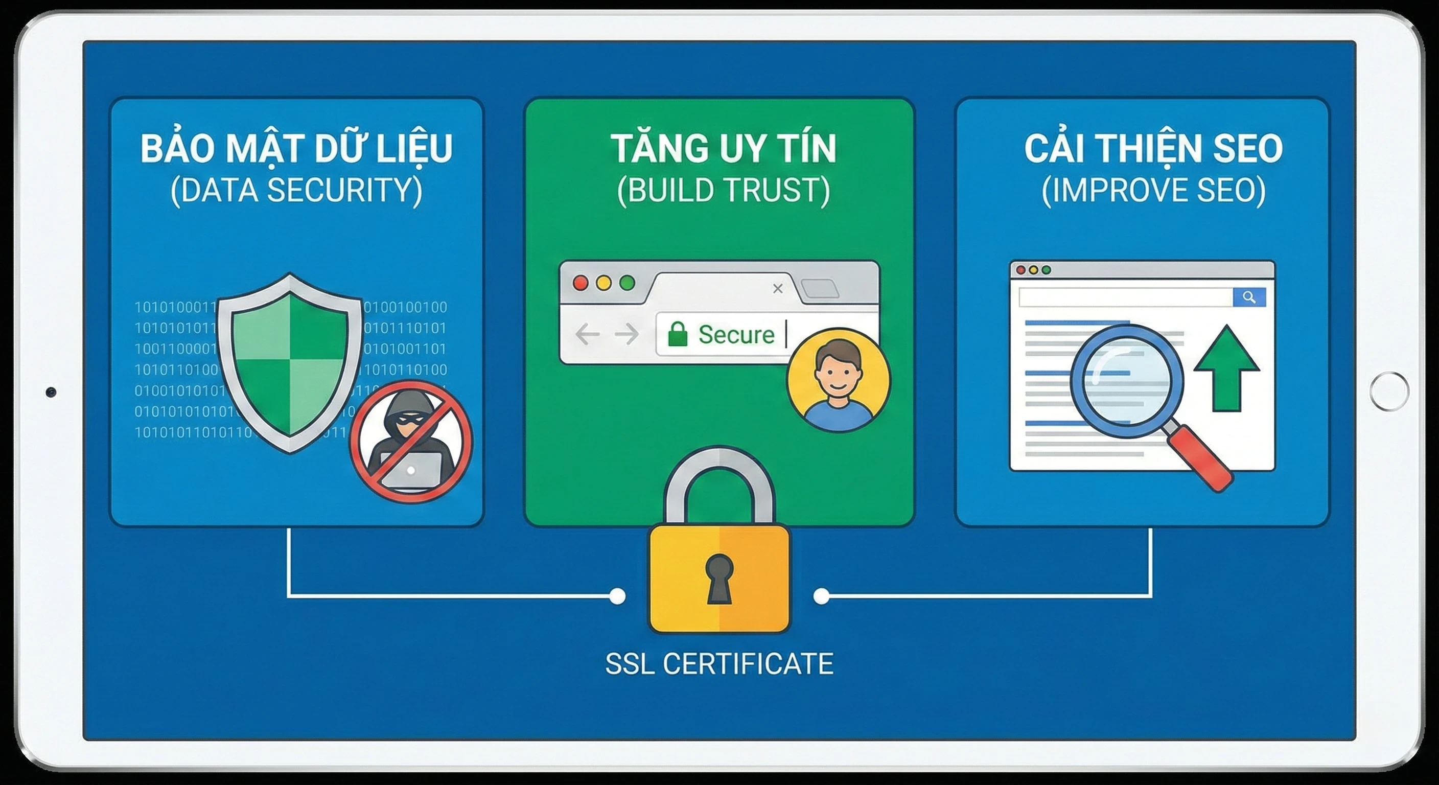 - Tăng độ tin cậy: Hiển thị biểu tượng “ổ khóa an toàn” trên trình duyệt.