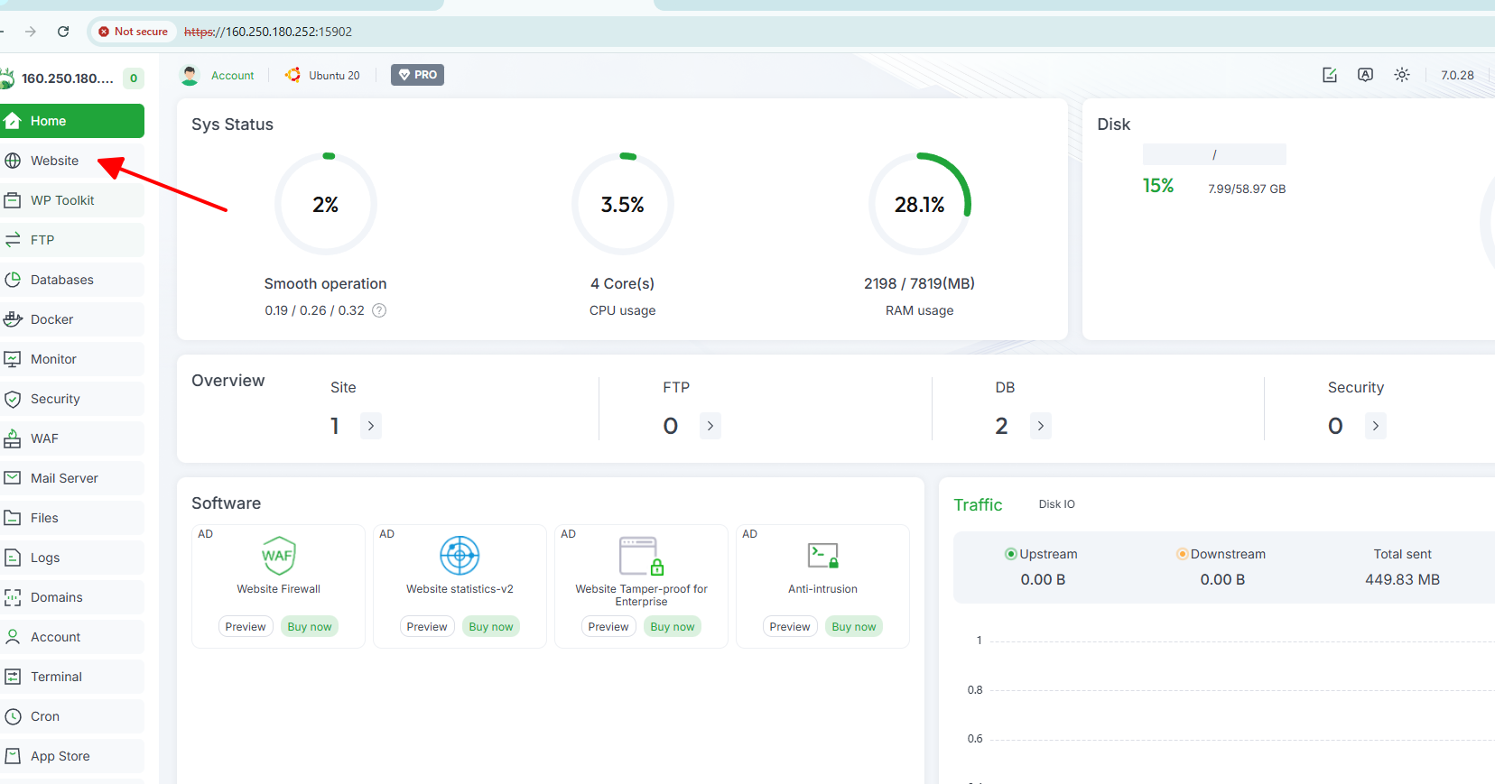 - Website đã được thêm trong mục website của aaPanel.