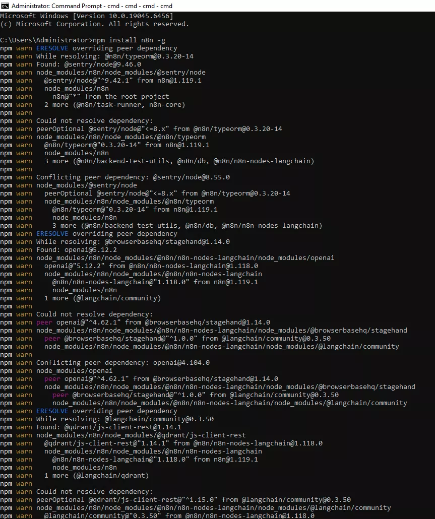 Sau khi đã có môi trường Node.js, việc cài đặt n8n trở nên rất đơn giản chỉ với một câu lệnh. Tại cửa sổ Command Prompt, bạn nhập lệnh sau để cài đặt n8n trên toàn hệ thống: