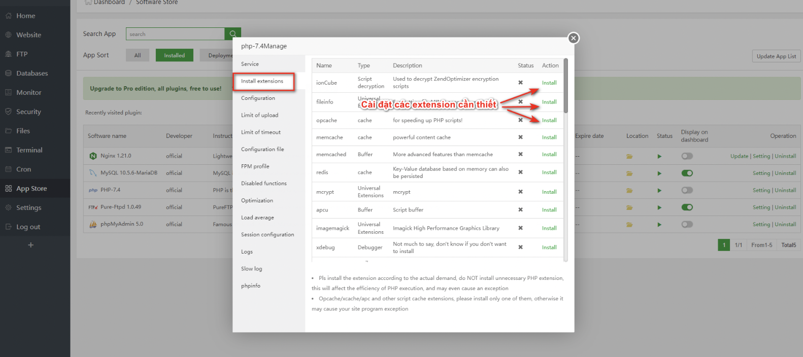 1. Cách cài đặt Php Extension trên aaPanel?