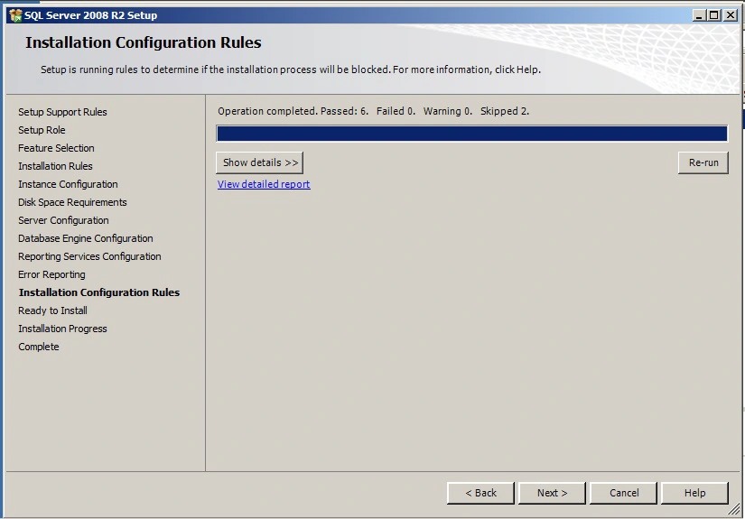 Tại Installation Configuration Rules, phần mềm sẽ tự kiểm tra xem các config đã được cấu hình đúng chưa. Nếu phần mềm không báo lỗi gì, bạn tiếp tục chọn Next.