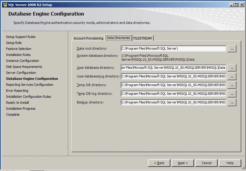 Trong tab Data Directories, chúng ta có thể thiết lập đường dẫn lưu trữ dữ liệu. Bạn có thể để chế độ mặc định có sẵn và chọn Next.