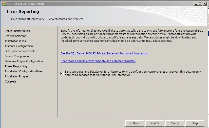 Ở mục Error Reporting, bạn không cần thực hiện gì cả và chỉ cần nhấn Next.