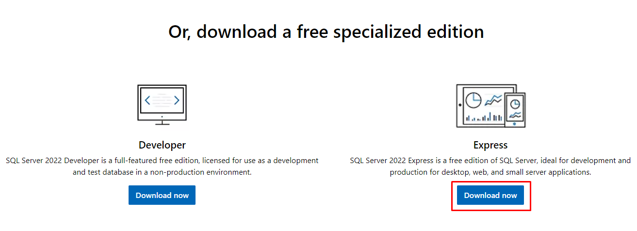 Bước 2: Download SQL Server 2022 Express trên trang chủ của Microsoft tại đây.