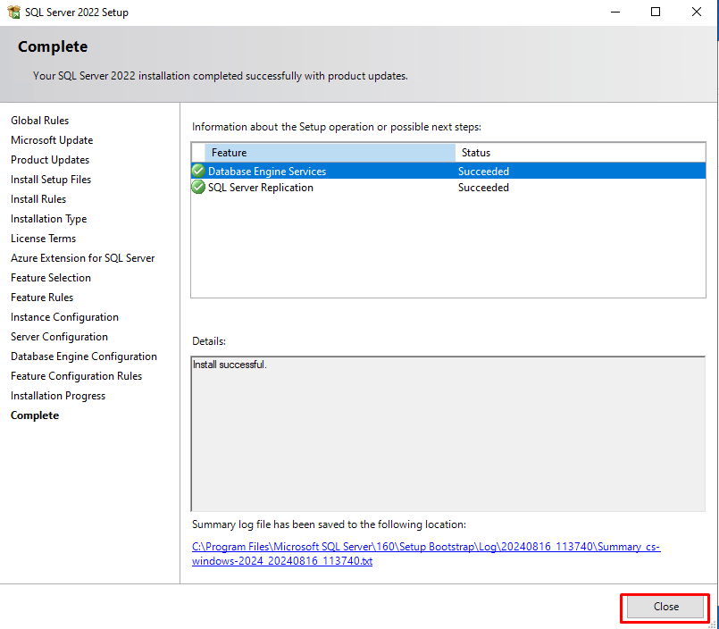 Vậy là chúng ta đã cài đặt thành công SQL Server 2022.