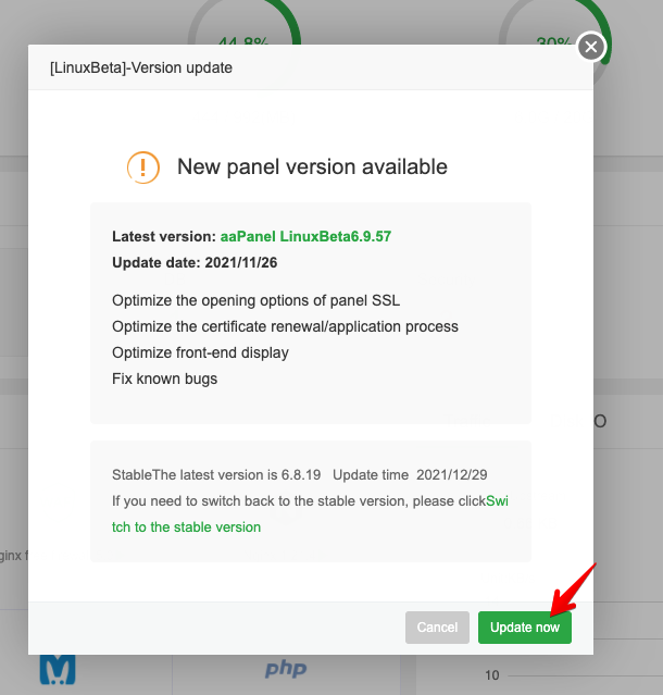Cách 1: Cập nhật phiên bản trực tiếp trên aaPanel?