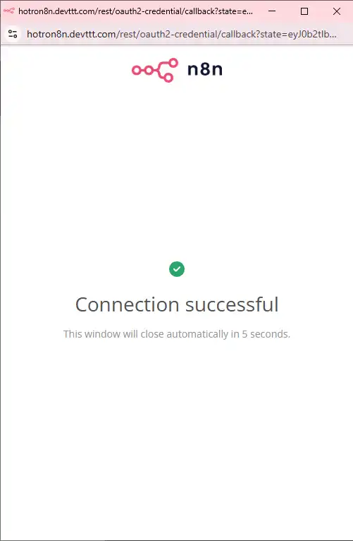 Nhấn chọn tất cả và tiếp tục. Quá trình xác thực thành công, bạn sẽ thấy thông báo trong n8n.
