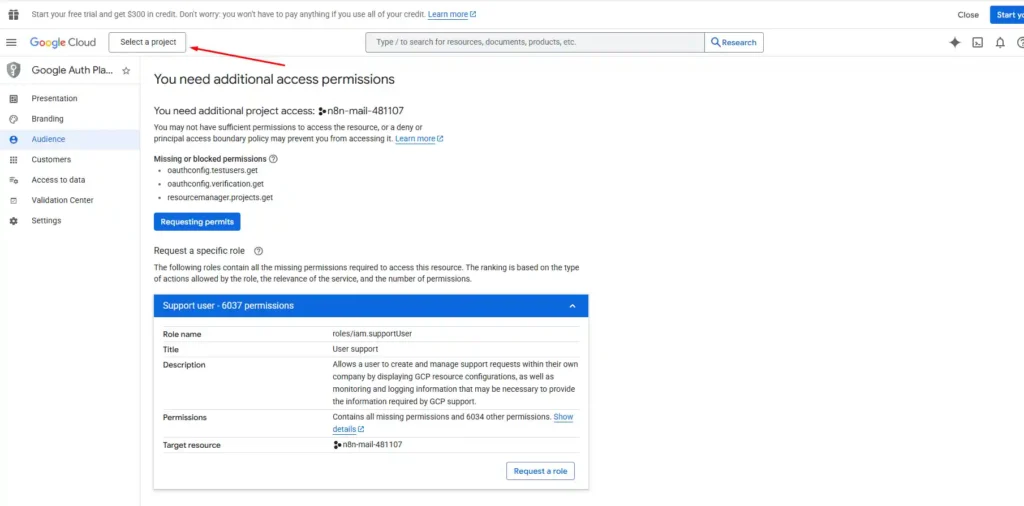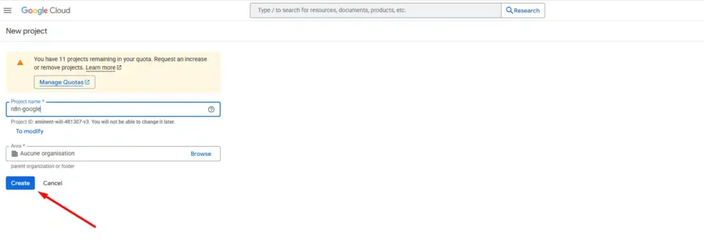 - Project name: ví dụ n8n-google