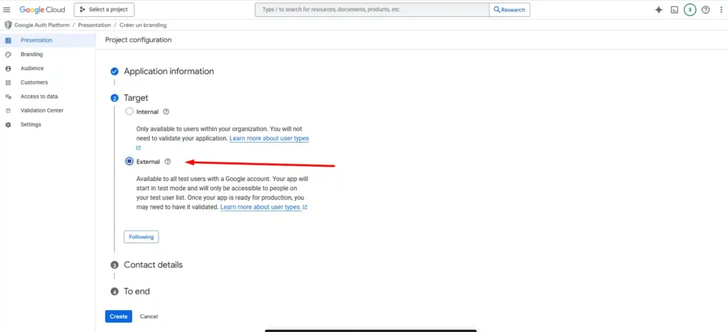 Bước 3: Cấu hình OAuth Consent Screen