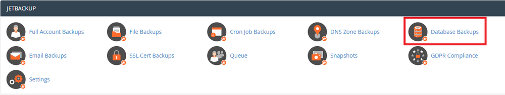JetBackup là một công cụ mạnh mẽ và trực quan giúp bạn quản lý và khôi phục dữ liệu một cách an toàn. Bạn có thể dễ dàng tìm thấy tính năng Database Backups ngay trong giao diện cPanel của mình.