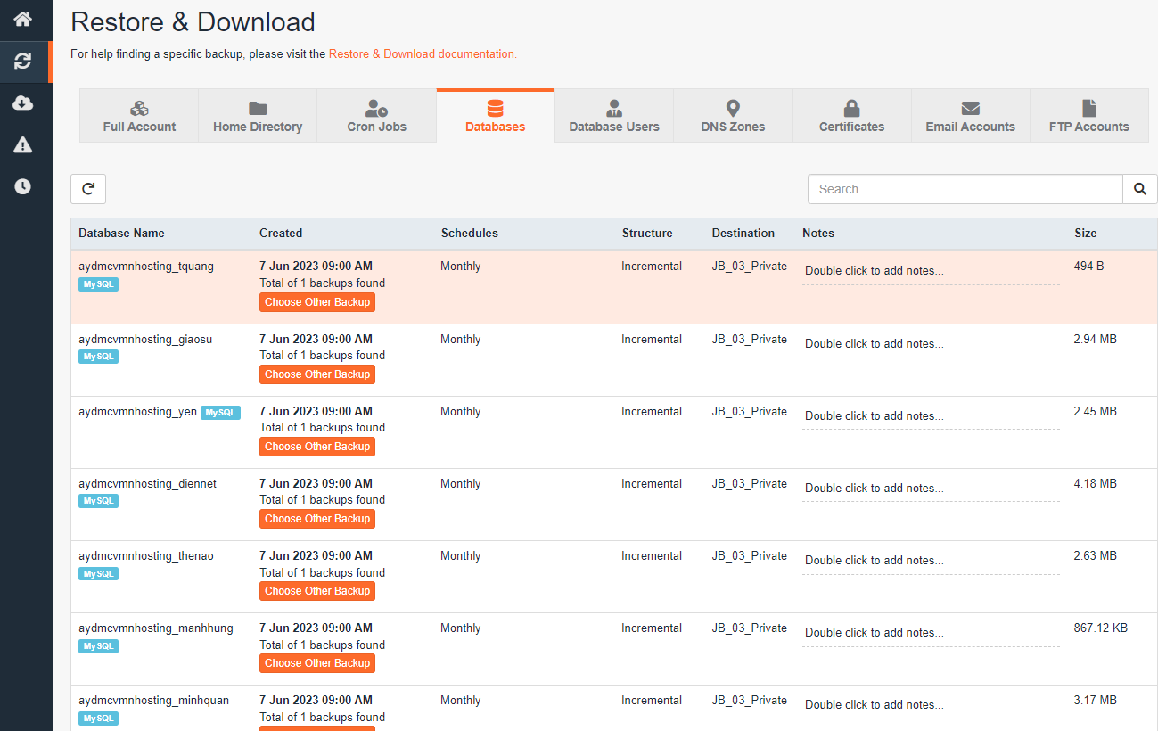Hướng Dẫn Khôi Phục Cơ Sở Dữ Liệu Qua JetBackup Trong cPanel
