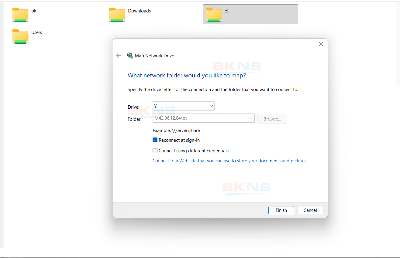 Để map thư mục share trên thành drive của client ta chuột phải vào thư mục đã share trên => Map Netword Drive => Finish .