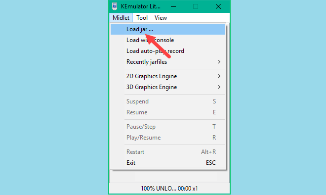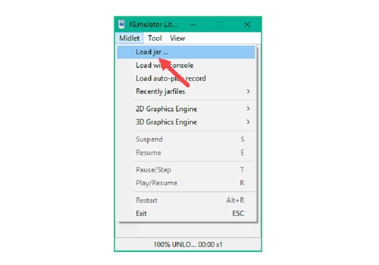 Bước 2: Tải game về máy là xong. Mở trình giả lập Kemulator trên máy tính của bạn. Bạn chọn Midlet >> Load jar…