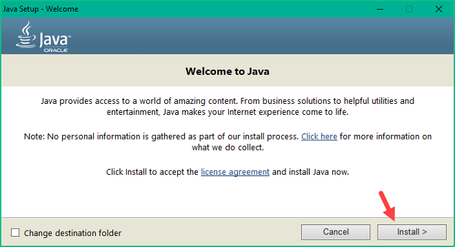 Bước 2: Tiếp theo, tải xuống và cài đặt JRE trên máy tính của bạn. Các bước sẽ dễ dàng như tải lại và cài đặt một ứng dụng thông thường.