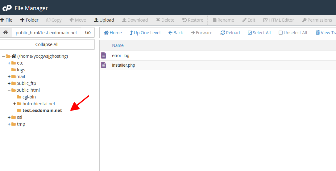 Trường hợp bạn tải dữ liệu cho tên miền phụ (subdomain), hãy chọn đúng thư mục tương ứng với tên miền đó.
