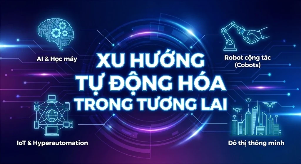Xu hướng nổi bật nhất của tự động hóa trong tương lai là sự kết hợp chặt chẽ với trí tuệ nhân tạo (AI) và học máy (Machine Learning). Thay vì vận hành theo các kịch bản cố định, hệ thống sẽ có khả năng phân tích dữ liệu theo thời gian thực, dự báo xu hướng và rủi ro, đồng thời tự điều chỉnh quy trình để đạt hiệu suất tối ưu. Nhờ đó, tự động hóa dần chuyển từ vai trò “thực thi lệnh” sang tư duy và ra quyết định, đặc biệt trong các lĩnh vực như sản xuất, tài chính, logistics và quản trị doanh nghiệp.