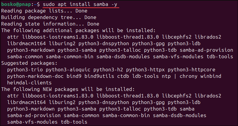 Chúng ta sẽ sử dụng apt , trình quản lý gói mặc định của Ubuntu, để cài đặt Samba:
