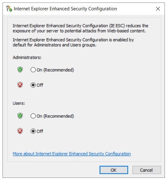Internet Explorer Enhanced Security Configuration (ESC) – Cấu hình bảo mật nâng cao của Internet Explorer (ESC) thiết lập cài đặt bảo mật xác định cách người dùng duyệt các trang web trên internet và mạng nội bộ. Các cài đặt này cũng làm giảm sự xuất hiện của máy chủ với các trang web có thể gây ra rủi ro bảo mật. Quá trình này còn được gọi là IEHarden.