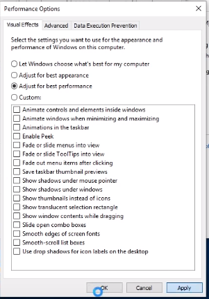 Bước 3: Chọn mục Adjust for best perfomance và ấn Apply + OK