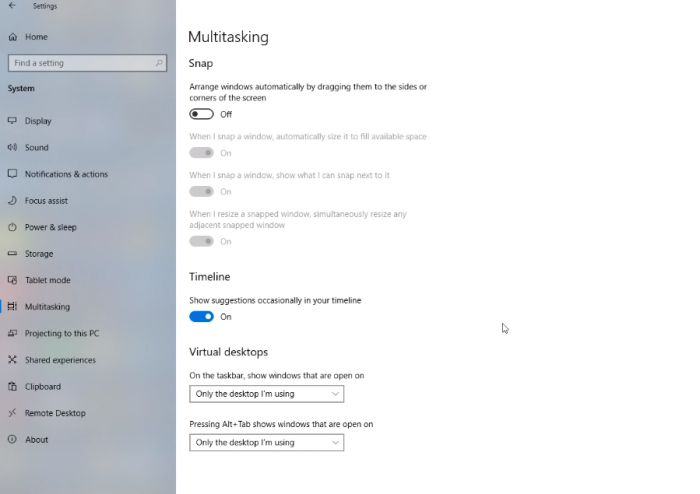 Tương tự như ở trên. Vẫn trong mục setting các bạn sẽ vào mục Multitasking và lựa chọn tắt các mục giống như hình ảnh bên dưới.